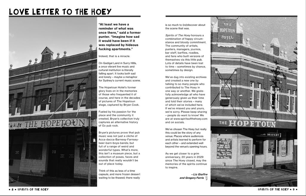 Drawing on Bryan Cook’s fantastic images and street press archives from the State Library of NSW, we are proud to present Spirits Of The Hoey – The Book.